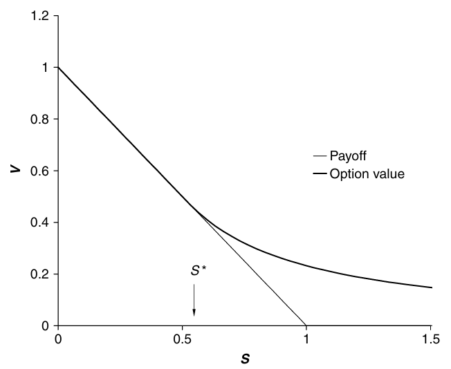 The problem for the American option is known as a free boundary problem. In the European option problem we know that we must solve for all values of S from zero to infinity. When the option is American we do not know a priori where the Black–Scholes equation is to be satisfied; this must be found as part of the solution. This means that we do not know the position of the early exercise boundary. Moreover, except in special and trivial cases, this position is time-dependent. For example, we should exercise the American put if the asset value falls below S*(t), but how do we find S*(t)?