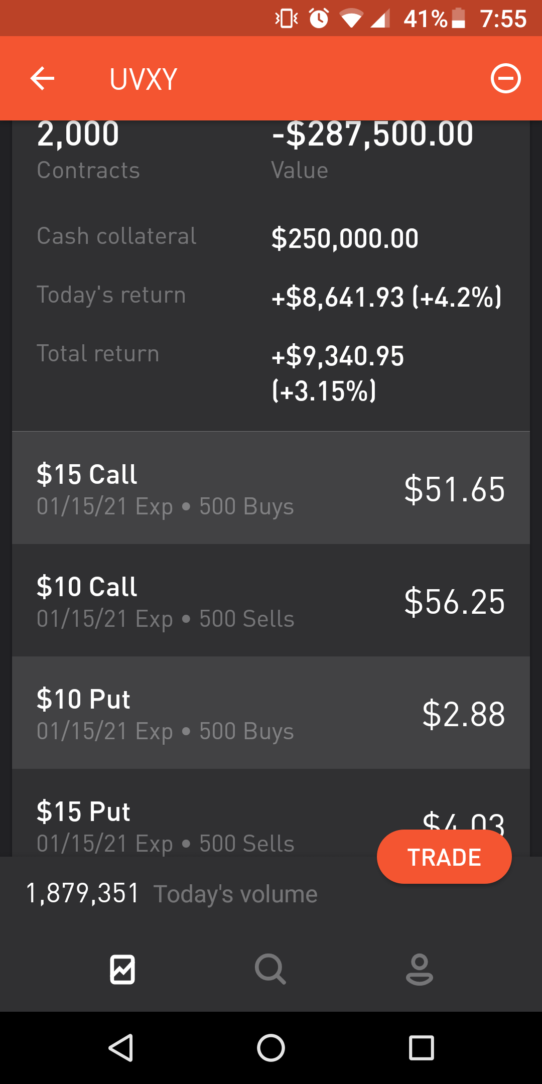 In particular, note that the box’s value is highly sensitive to changes in the underlying. Although by looking at the y-axis, we see that the box deviates from delta neutral only by a small amount, the fact that they are often done in large sizes can result in additional risk. How large was the size for this particular trade? Looking at the beginning of the post, we saw that Robinhood effectively gave 1R0NYMAN a debit of $287,500 on his initial $5,000 investment, which comes to a leverage of 57.5x.