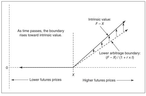 What if the option was on futures instead of spot? This allows us to discount the effects of dividends as well as any of the benefits and costs of carry. However, rates still matter. The graph changes to the following: