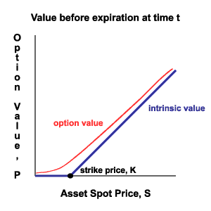 Most textbooks and classes use a graph like the one below to demonstrate the option time / optionality value before expiration by drawing a smooth line for the option value strictly above the intrinsic value. However, is this picture always accurate?