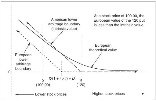 For readers who are more mathematically inclined, the above explanation may not prove too satisfying. We will now give a more technical explanation for the conditions of early exercise. Consider the example of a perpetual American put can be exercised for a put payoff at any time with no expiry.