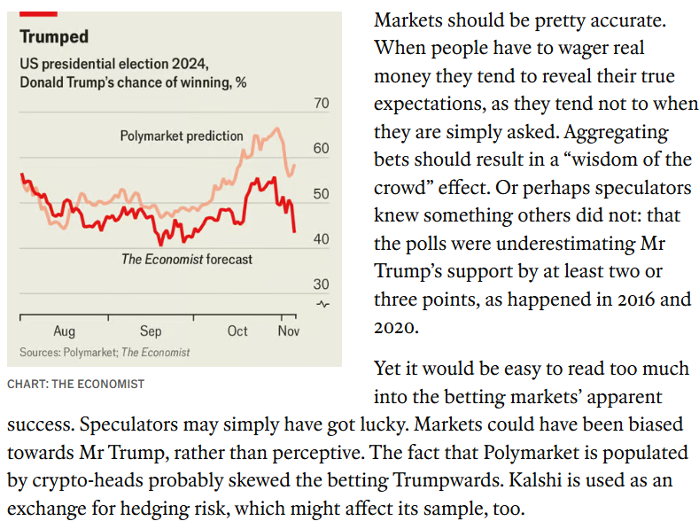 Additionally, media coverage consistently reinforces the assumption that market prices equate to probability estimates. Even when skepticism is expressed at market prices, it is typically the rationality of participants that is called into question rather than the idea that prices are probabilities. For example, the commentary below