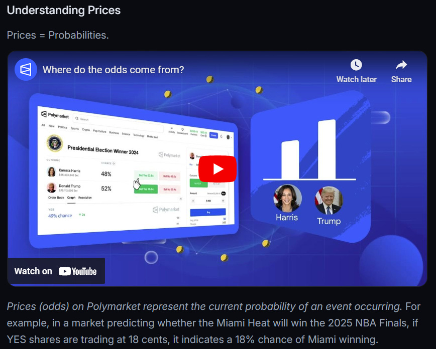 The widespread interpretation of prediction market prices as direct probabilities is unsurprising, particularly given that platforms like Polymarket explicitly present them as such. For example, here is a screenshot from their own website